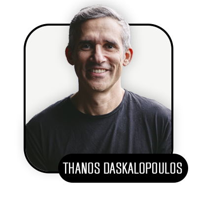 THANOS DASKALOPOULOS é uma das principais figuras da música corporal e do sapateado na Grécia, com uma presença marcante como performer e educador em diversos países. Mentorados por artistas renomados como Heather Cornell, Max Pollak e Keith Terry, seu trabalho explora a fusão entre movimento e som, dissolvendo as fronteiras entre ambos por meio da improvisação — base de sua abordagem artística e pedagógica, chamada Impromptu Teaching. Entre 2007 e 2015, dirigiu o Tapmotif, um retiro imersivo de improvisação para músicos e sapateadores na ilha grega de Lefkada, fortalecendo uma comunidade internacional. Em 2009, cofundou o Kantu Korpu, o primeiro grupo de música corporal da Grécia, que se apresentou em importantes festivais internacionais. Posteriormente integrou o grupo espanhol Cambuyon, com o qual estreou na Broadway em 2015, e realizou turnês com Body Music: See Music, Hear Dance. Ativo na cena de jazz e funk de Atenas, foi vocalista e dançarino do Funkollectiv e colabora amplamente com produções de dança e teatro. Cofundador do espaço PLAYGROUND for the Arts, é também professor no Instituto Orff e atua internacionalmente, compartilhando sua paixão pelo ritmo, movimento e improvisação.
