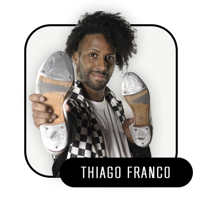 THIAGO FRANCO é nascido e criado na zona oeste do Rio de Janeiro. Iniciou seus estudos em música e dança livre aos 7 anos de idade. Com formação em sapateado e jazz pela escola de dança Marta Bastos. Foi integrante de companhias profissionais de sapateado e de contemporâneo como a "Cia Khoros". Participa como bailarino e assistente coreográfico de comissões de frente no Carnaval carioca, e também participou de programas de TV e clips musicais. Integra o elenco do espetáculo em processo chamado "Malemolente", e atualmente é professor e coreógrafo do Centro de movimento Deborah Colker, Espaço das Artes e Espaço de Dança Monique Siqueira. Tap dancer com estilo versátil e que trás a influência de suas vivências na dança para dentro do tap dance. Divas pop são suas preferidas, mas outros estilos são muito bem vindos!