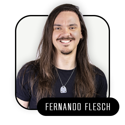 FERNANDO FLESCH é Natural de Florianópolis, iniciou os estudos de sapateado em 2003 com a professora Bia Mattar. Teve sua formação percorrendo importantes eventos de sapateado no Brasil, Estados Unidos e Europa. Coreógrafo convidado no Deutsch-Sorbisches Volkstheater Bautzen (2025). Integrou o espetáculo CRU (2023-2024), sob direção de Ayesha Zangaro; a pesquisa Distorção (2022), sob direção de Adilso Machado; a banda de jazz e MPB Step by Tap (2016-2022); a Cia. Trupe Toe (2014-2020), sob direção de Marina Coura; Organizador do evento “Brasil Tap Berlin” junto com Mariana Souza, evento de sapateado que promove a difusão do sapateado brasileiro e a troca das culturas brasileira e alemã. Leciona atualmente em Berlim, já tendo ministrado oficinas em outras cidades do Brasil e da Alemanha, destacando importantes instituições de ensino como a UFSC, IFSC e a UdK Berlin. Graduado em Arquitetura e Urbanismo pela UFSC, teve como seu principal objeto de estudo a atuação do corpo no espaço e na cidade.